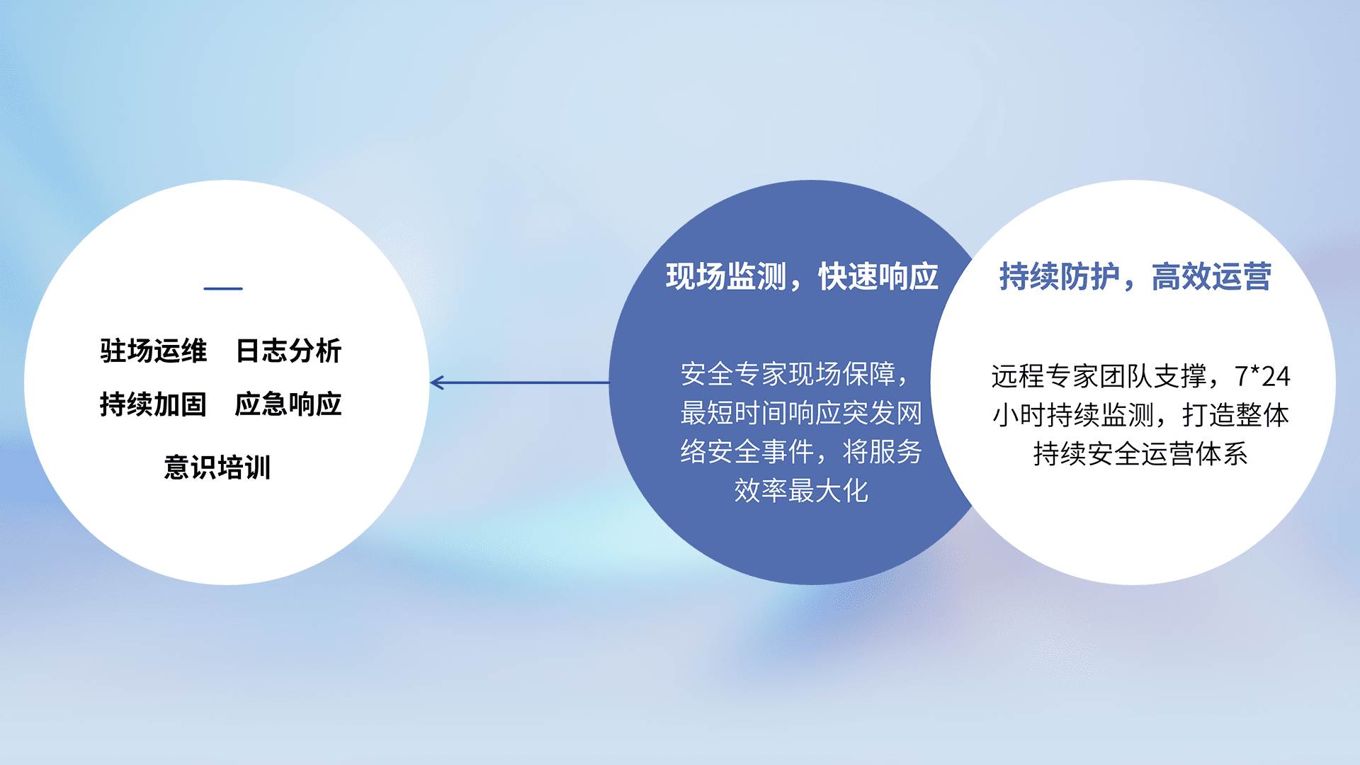 针对客户行业特性,,,,提供专属的一站式安全管理服务,,,帮助客户全面感知网络空间威胁,,,通过安全专家的线上、、、、线下防护支持,,实现风险闭环,,,将安全保障常态化,,,,为客户打造常态化安全运维运营服务。。。